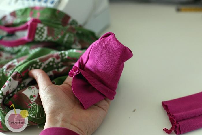 - Ompele saumurilla pitkä sauma ja päättele lanka resorin “pohjasta”