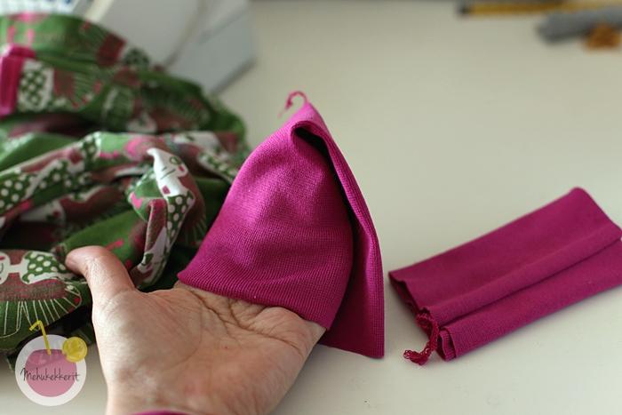 Pipon ompeleminen pussiin on varmasti tullut teille jo tutuksi, ja päätinkin kokeilla voiko samaa taktiikkaa käyttää hiharesoriin. Lyhyemmässä resorissa ompelutapa on se ja sama, mutta pidemmässä resorissa pussiin ompelu pitää sivusauman napakasti yhdessä.