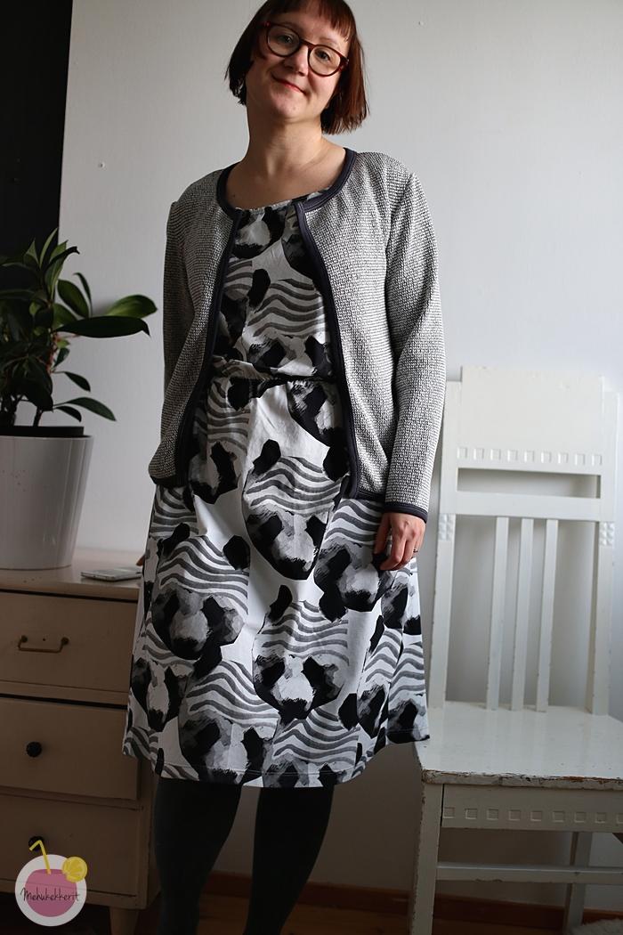 Todella kiva tuo mekon kangas ja jakku sopii siihen kauniisti 🙂