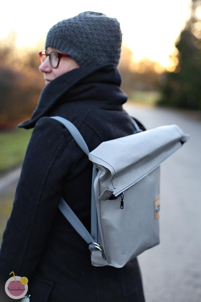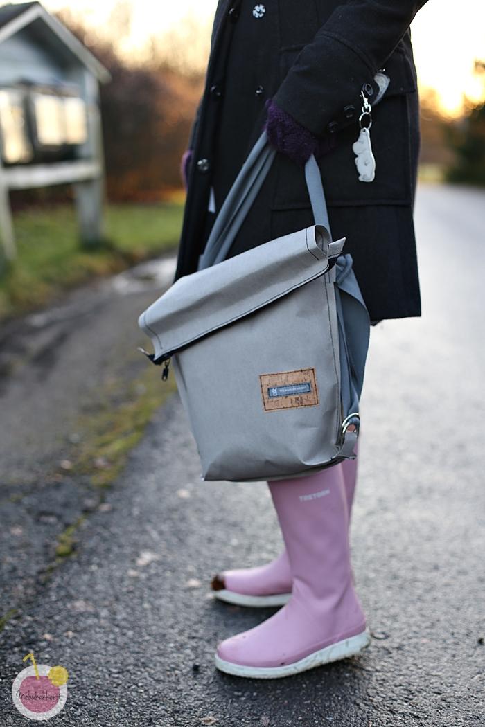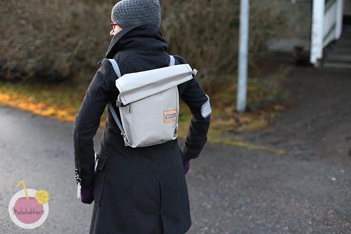 Itse ostin palan Ullakasta, joissa tätä löytyi ruskeana, harmaana, valkoisena ja mustana. Oma palani taisi olla 50×75 cm, joka riittää tällaiseen reppuun mainiosti, ja ylijäämästä saa hyvin vielä vaikka kortti- tai puhelinkotelon. Itse paperi on todella jännän tuntuista, ja insinööripuoliso ei edellenkään usko, että tämä tulee kestämään pesukonetta. Käsin olen kastellut tätä moneen kertaan, eikä ilme kyllä muutu pelkästä kastelusta. Pesukonepesulla pinnasta tulee ryppyisempi, mutta muuten materiaalin tuntu pysyy samana.
