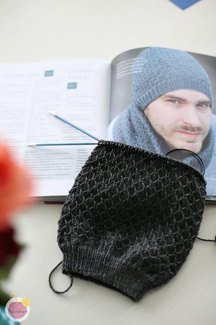 Olen innostunut neulomaan itselle ja lapsille, ja vihdoin alkusyksystä mieheni vihjaili myös olevansa pipon tarpeessa. Sain luvan käydä ostamassa tummanharmaata lankaa juuri hänen pipoaan varten, ja valitsimme mallin yhdessä Klompelompen kirjasta.