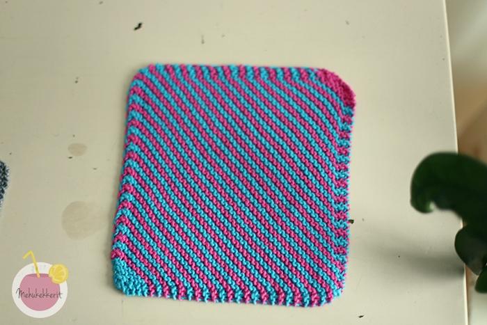 Tein kaksi aivan perusohjetta rättiin. Näitä voi soveltaa täysin oman mielensä mukaan ja monia muitakin tapoja löytyy näiden lisäksi. Rättiä voi käyttää arjessa esim. viikon tai kaksi, jonka jälkeen sen voi pestä muun pyykin mukana. Puuvillalangat kestää hyvin 60 asteen pesun, muista kannattaa tarkastaa langan pesuohje. Pesun jälkeen rätti on taas käyttökelpoinen.