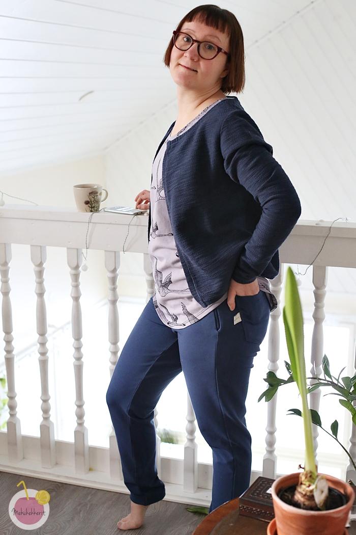 Minä tein kuun alussa housut itselleni, sen jälkeen pinon uusia housuja lapselle, yhdet villahousut, säärystimet ja housut myös miehelle. Toteuttamatta jäi pitkään listalla olleet alushousut, jotka täytyy kyllä toteuttaa jonain toisena kuukautena.