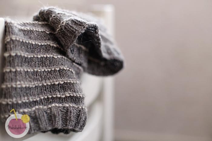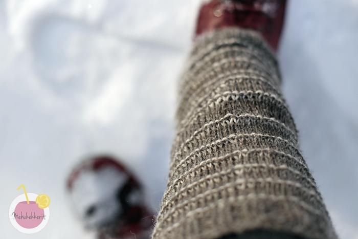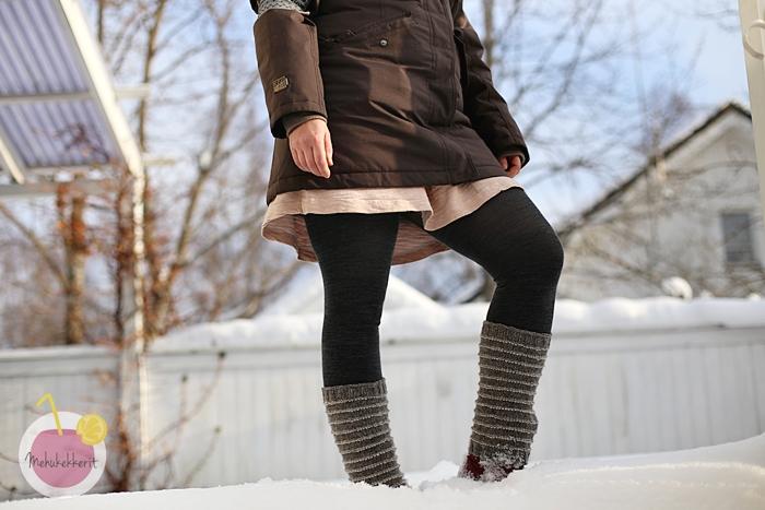 Talven voi myös viettää tosiaan merinovillasukkahousuissa, jolloin housujen tilalla voi käyttää esimerkiksi monikäyttöisiä säärystimiä. Säärystimistä voi tehdä yksiväriset, moniväriset tai pysyä vaikka vaan kahdessa hyväksi todetussa.