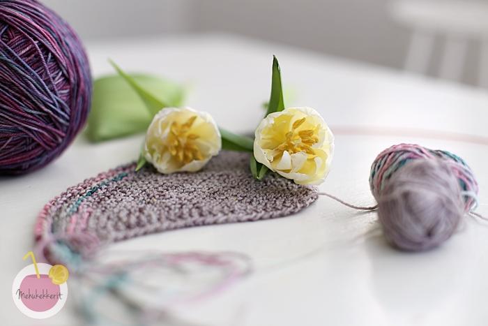 Toista näitä kahta kerrosta, kunnes jäljellä on 5 silmukkaa. Päättele ne ja katkaise lanka.