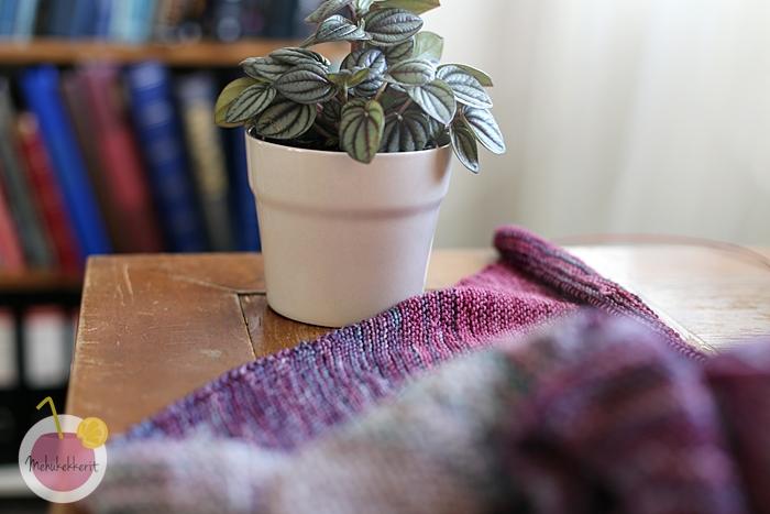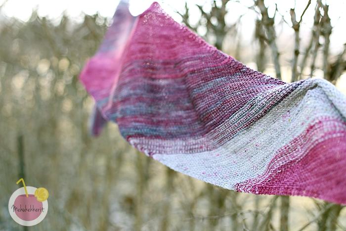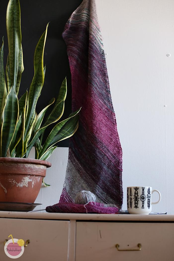 Huivista piti tulla värikäs. Lopulta päädyin harmaiden ja punertavien sävyihin, ja jaksoin jopa neuloa pidemmän huivin kuin mitä aluksi ajattelin. Itse malli on todella helppo, ja tämän voi neuloa lähes kaikista pehmeistä merinovilloista, tai muistakin langoista joita löytyy kaapista. Eli sopisi hyvin myös jämähuiviksi!