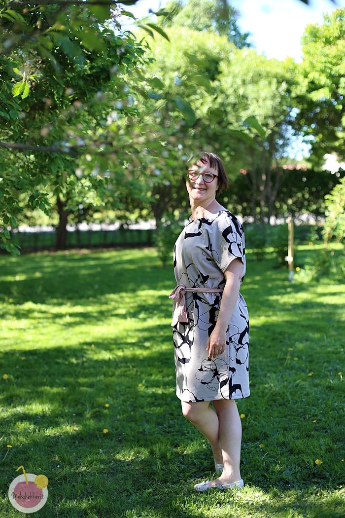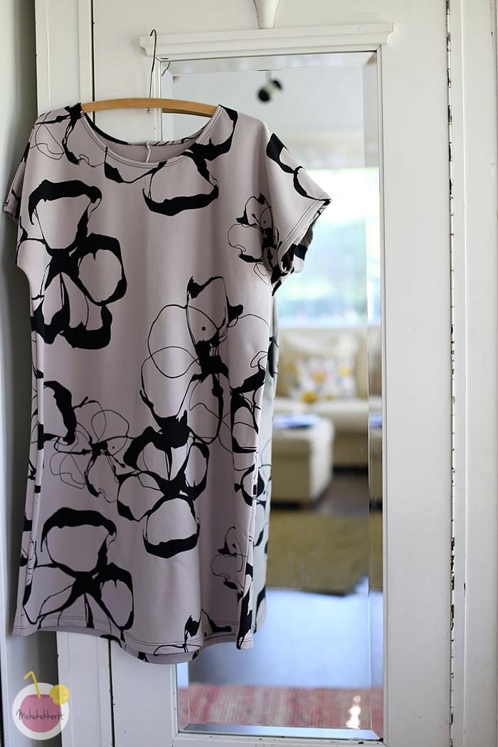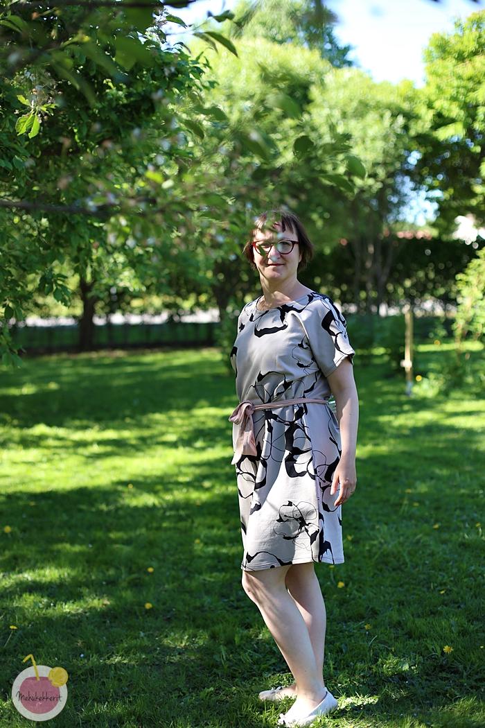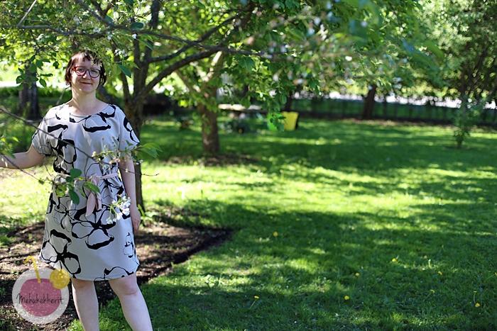 Helpoin kesämekko on toki sellainen, joka antaa myöten, pitää ryhtinsä, sisältää simppelin kaavan ja vain vähän huoliteltavaa. Niin kuin tällainen simppeli kesätunika, johon helppoja kaavaoppeja antaa esim. Tehtaamo. Itse hieman muokkasin hihaa erilaiseksi, sekä pidensin roimasti helman mittaa. Malliltaan mekko on siis laatikko. Mekon pääntie on käännetty miehustakankaasta leikatulla “resorilla” nurjalle, ja tikattu päältä kaksoisneulalla. Kädentiet ja helma on tikattu kaksoisneulalla, ja muuten mekko onkin ihanan simppeli ja nopea ommeltava.