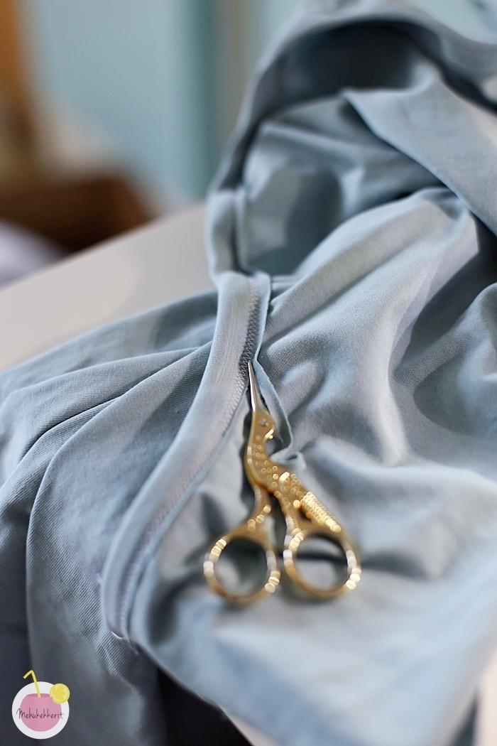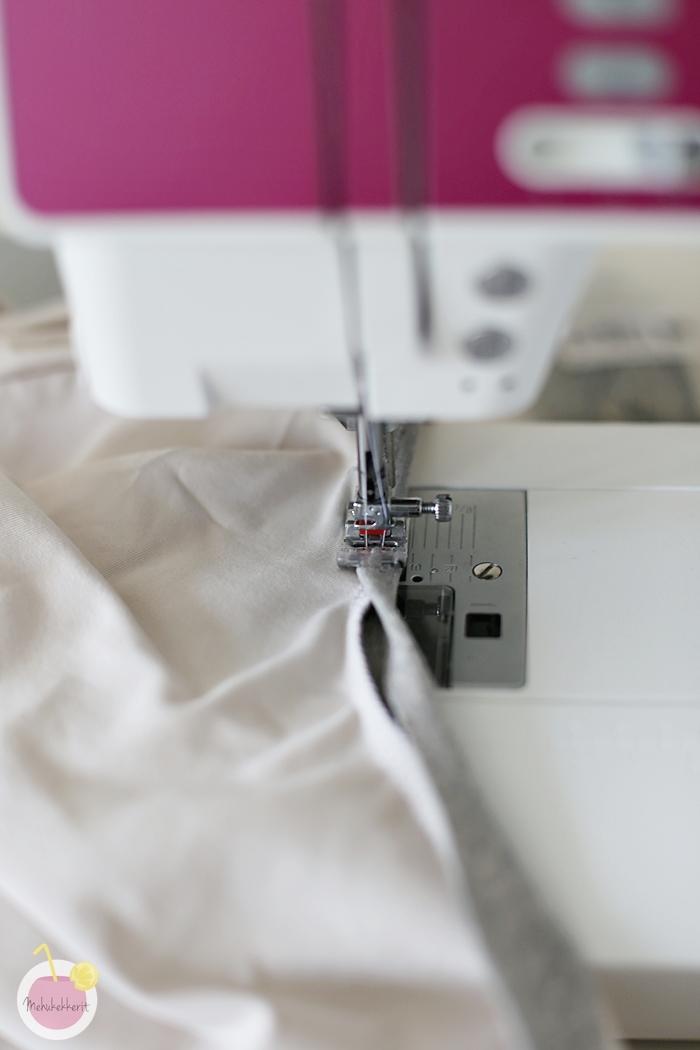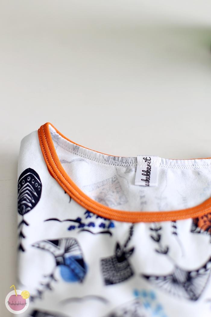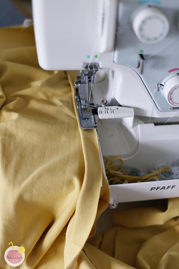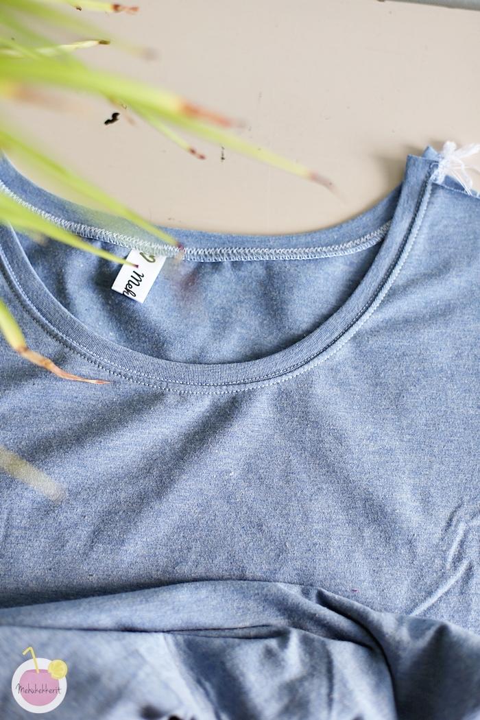 6. Silitä kunnolla ja ompele muu paita tai mekko loppuun. Ompele siis seuraavaksi hihat (niiden huolittelu on hyvä tehdä samalla tapaa kuin pääntie), ja huolittelun jälkeen ompele ne kiinni miehustaan. Ompele sivusaumat ja huolittele helma kaksoisneulan tikillä.