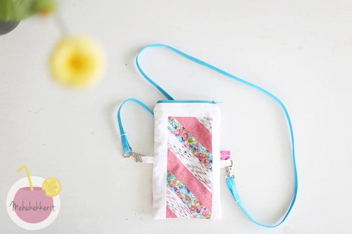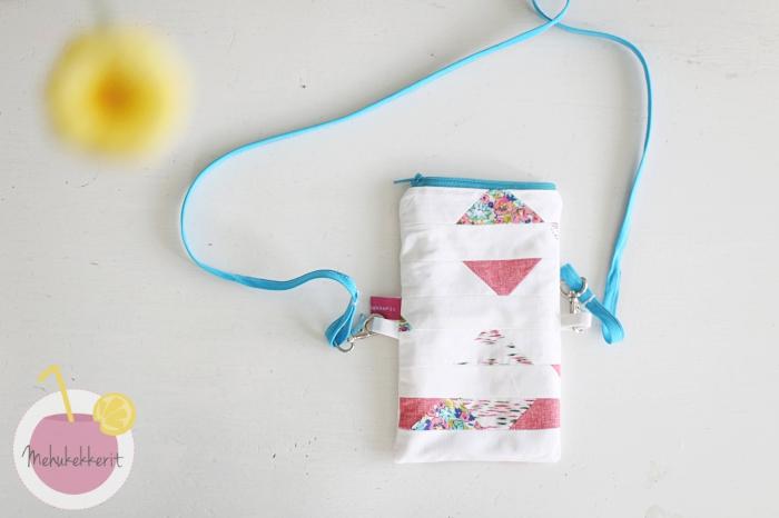Elokuu ja koulun alku siintää mielessä jo yhä kirkkaammin. Kesän alussa tuleva koululainen sai myös ensimmäisen oman kännykkänsä, ja kesämekkojen luvattuna aikana on ollut hieman haasteita sen kuljetuksessa paikasta toiseen. Niinpä lapsi itsekin toivoi kännykälle omaa pussukkaa, jonka saisi helposti ja nopeasti mukaan myös pyöräillessä vaikka puistoon.