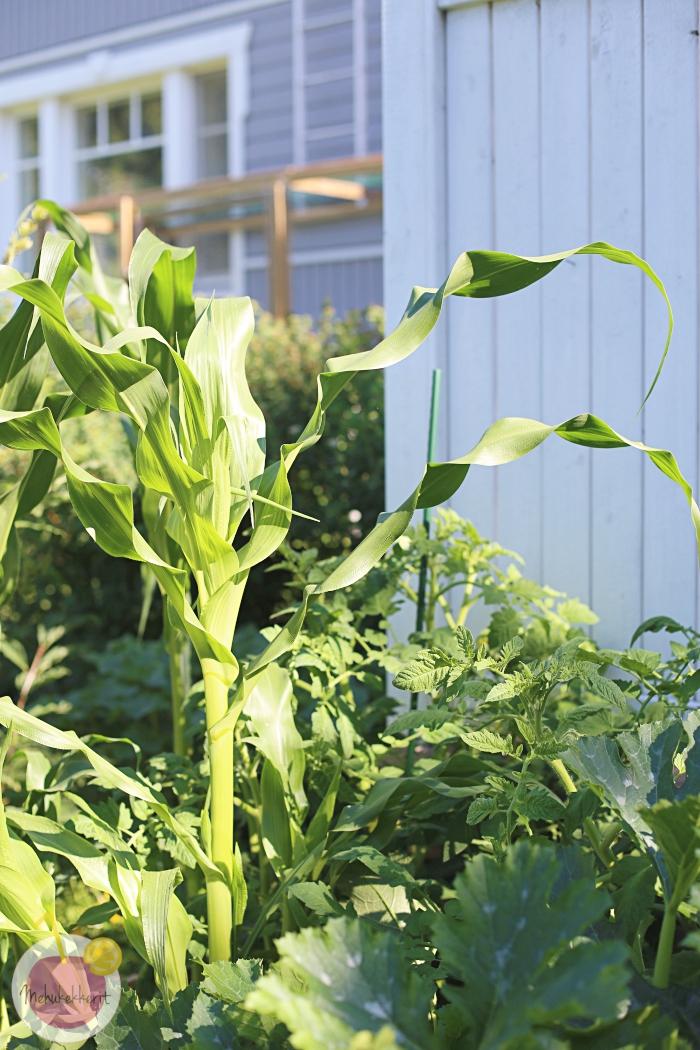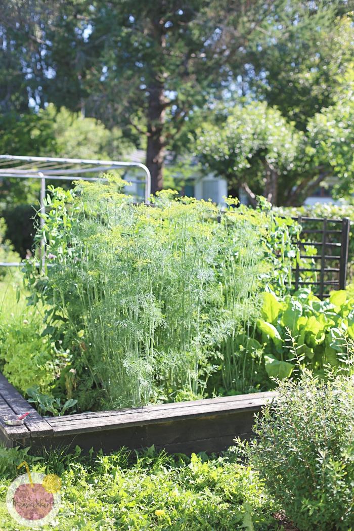 Kasvimaalta saamme poimia niin salaatit, tillit (hieman liikaakin!!), herneet, pinaatit, ruohosipulit, mausteet, kesäkurpitsat, vähän kurkkua ja toivottavasti vielä tomaattiakin. Samoin maan alla on vielä kasvamassa keltajuurta, perunaa ja porkkanaakin. Ei tällä ihan koko talvea perhettä ruoki, mutta aika hyvin kesän apuna kuitenkin.