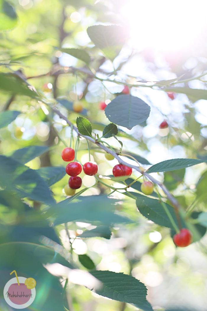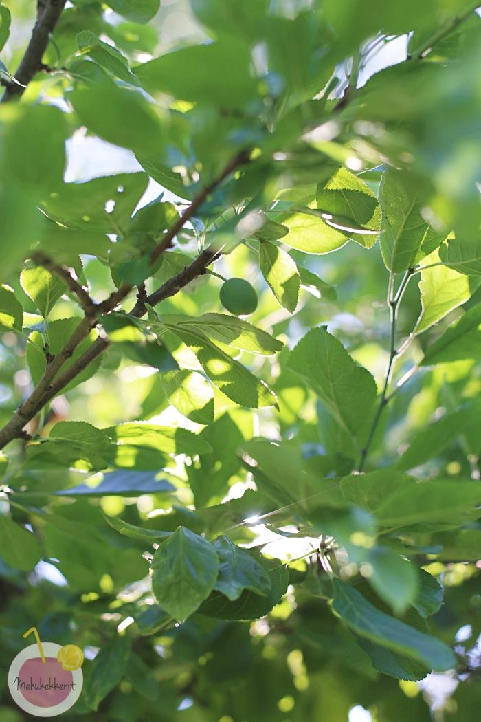 On sitä satoakin saatu. Nokkonen ja vuohenputki viihtyvät pihalla niin mainiosti, että piirakkaa ja lettuja niistä saa niin usein kuin vain jaksaa leipoa. Viime kesänä istutetut marjapensaat ovat tänä vuonna antamassa meille jopa piirakan tai toisenkin verran, viime kesänä sato meni suoraan lasten suihin. Vadelmat ovat levinneet, sekä tuottavat satoa jo aika punaisesti. Sen sijaan meidän herkkuluumupuu kärsi keväällä kolhuja rusakoista, ja tulossa on huimat kolme keltaista luumua. Vanhempi tumma luumu toivottavasti ruokkii meidän suut hieman paremmin.