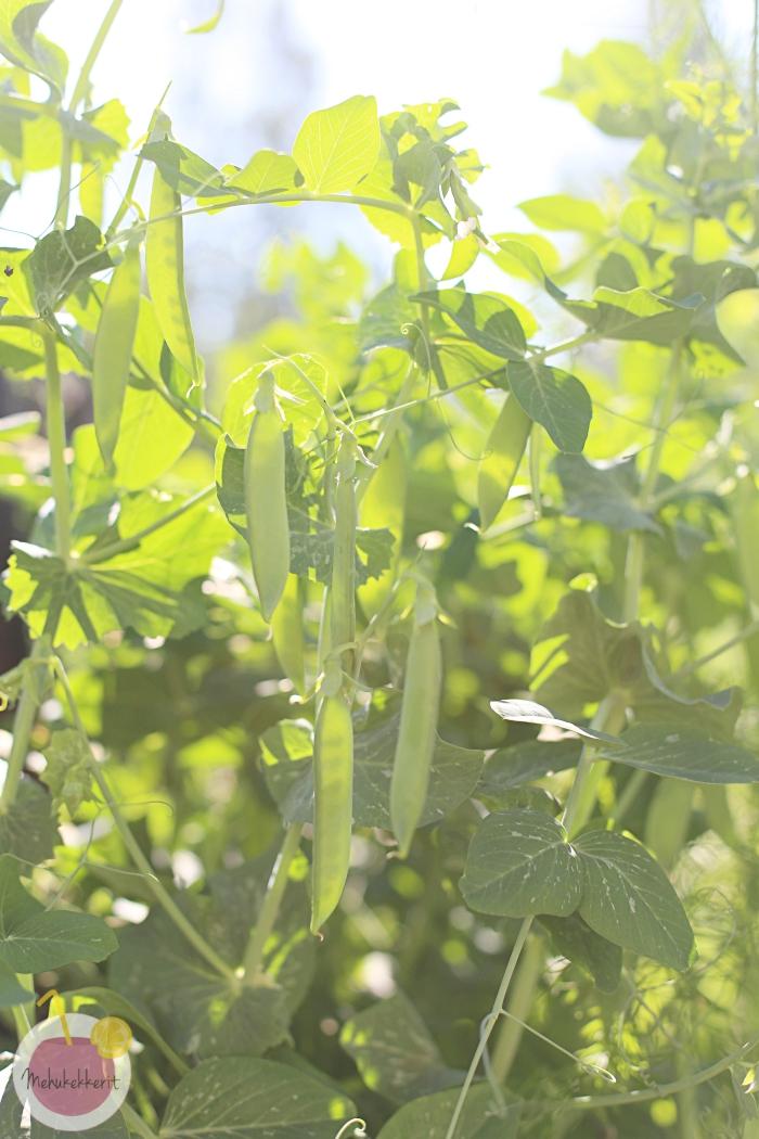 Kasvimaalta saamme poimia niin salaatit, tillit (hieman liikaakin!!), herneet, pinaatit, ruohosipulit, mausteet, kesäkurpitsat, vähän kurkkua ja toivottavasti vielä tomaattiakin. Samoin maan alla on vielä kasvamassa keltajuurta, perunaa ja porkkanaakin. Ei tällä ihan koko talvea perhettä ruoki, mutta aika hyvin kesän apuna kuitenkin.