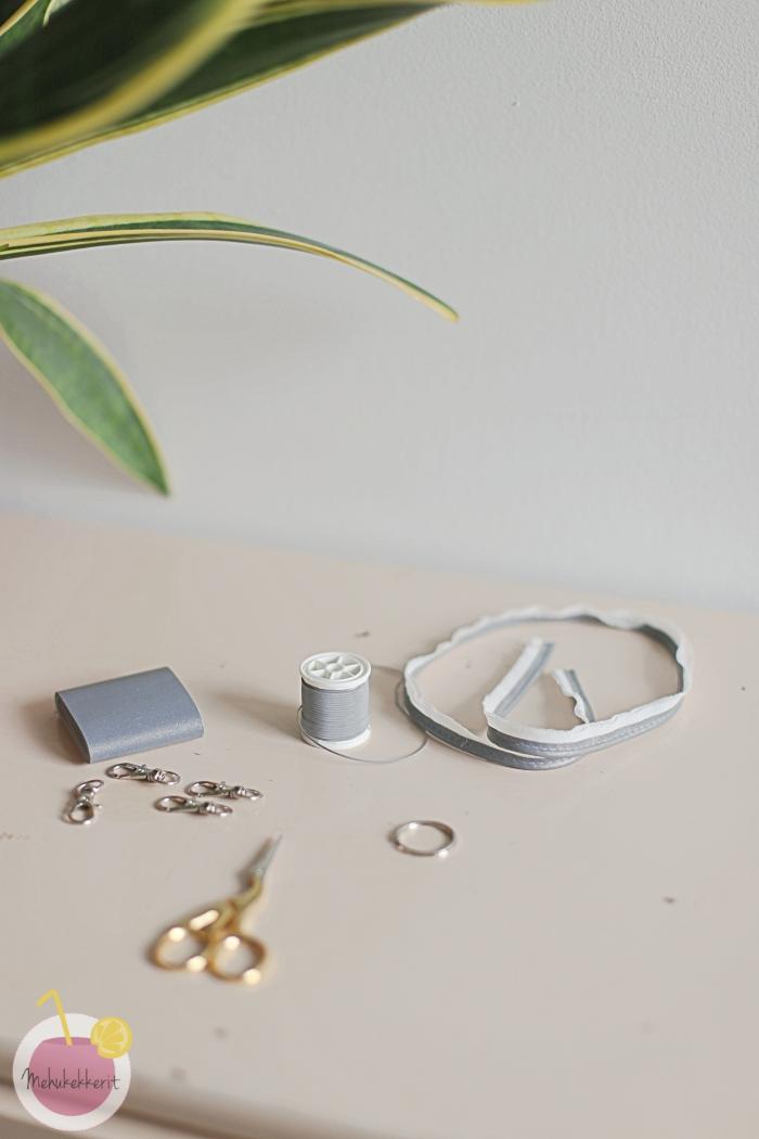 Heijastimen tekemiseen tarvittavia tarvikkeita: