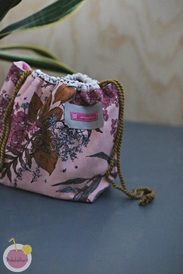 Sisustuspuuvillan ompelu on todella helppoa. Suurin haaste on aina toki välisilitykset, ja siis lähinnä niiden unohtaminen. Tähän pussukkaan materiaali oli jopa hitusen liian paksua, ja parhaimmillaan tämä toimisikin laukuissa tai vaikka sisustustyynyissä. Niihin minulla ei kuitenkaan ollut nyt selkeää tarvetta. Sen sijaan aion kyllä ommella jäljelle jääneestä palasta vielä ehkä itselleni uuden lompakon!