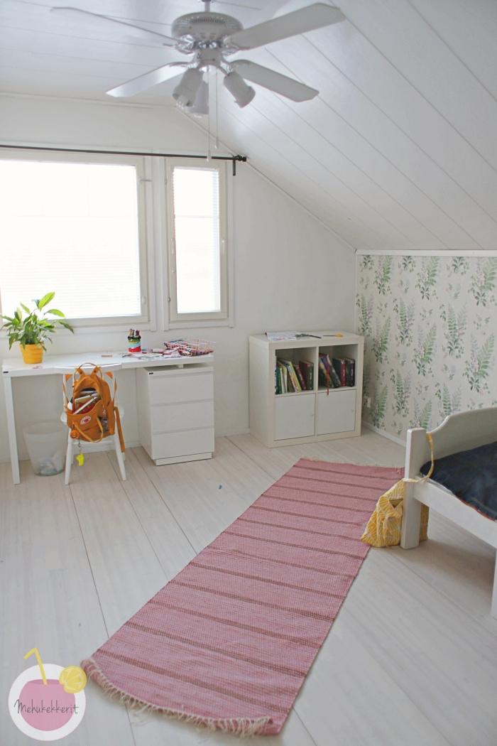 1. Oma tila on lapsille tärkeää ja kiva, kun olette pystyneet järjestämään sitä omille lapsillenne. Tosi kiva tuli tuosta koululaisen huoneesta. Minäkin pidän tuosta tapetista tosi paljon. Voisin ottaa sitä meillekin johonkin huoneeseen. Huone valoistui kyllä tosi paljon remontin myötä. Lattia on myös kaunis.