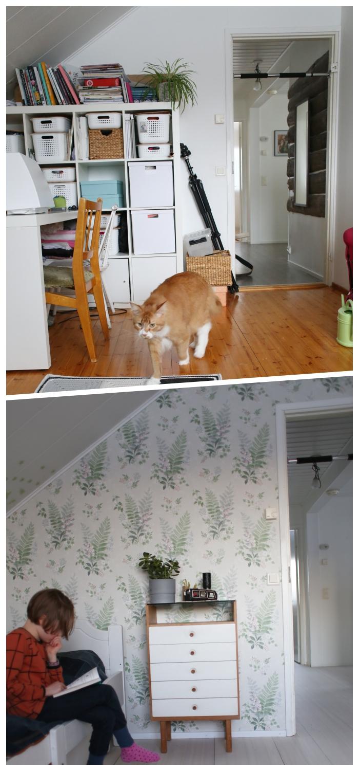 1. Oma tila on lapsille tärkeää ja kiva, kun olette pystyneet järjestämään sitä omille lapsillenne. Tosi kiva tuli tuosta koululaisen huoneesta. Minäkin pidän tuosta tapetista tosi paljon. Voisin ottaa sitä meillekin johonkin huoneeseen. Huone valoistui kyllä tosi paljon remontin myötä. Lattia on myös kaunis.