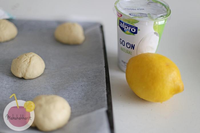 Vegaaniset sitruunaiset rahkapullat (noin 16 kpl)
