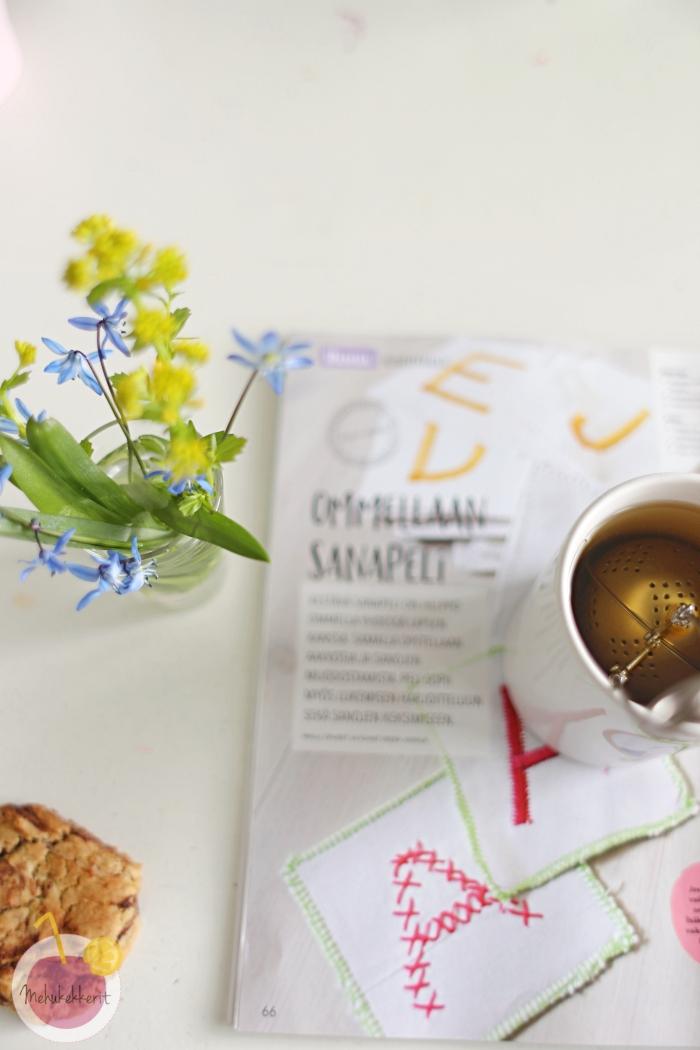 Kesän kukat ovat päässeet jo oman teehetken äärelle. Niistä vielä haaveillessa tein kuitenkin kesän retkiä varten ommellun sanapelin. Pelin ohje löytyy nyt uusimmasta Ihana-lehdestä, joka on ilmestynyt kauppoihin tällä viikolla.