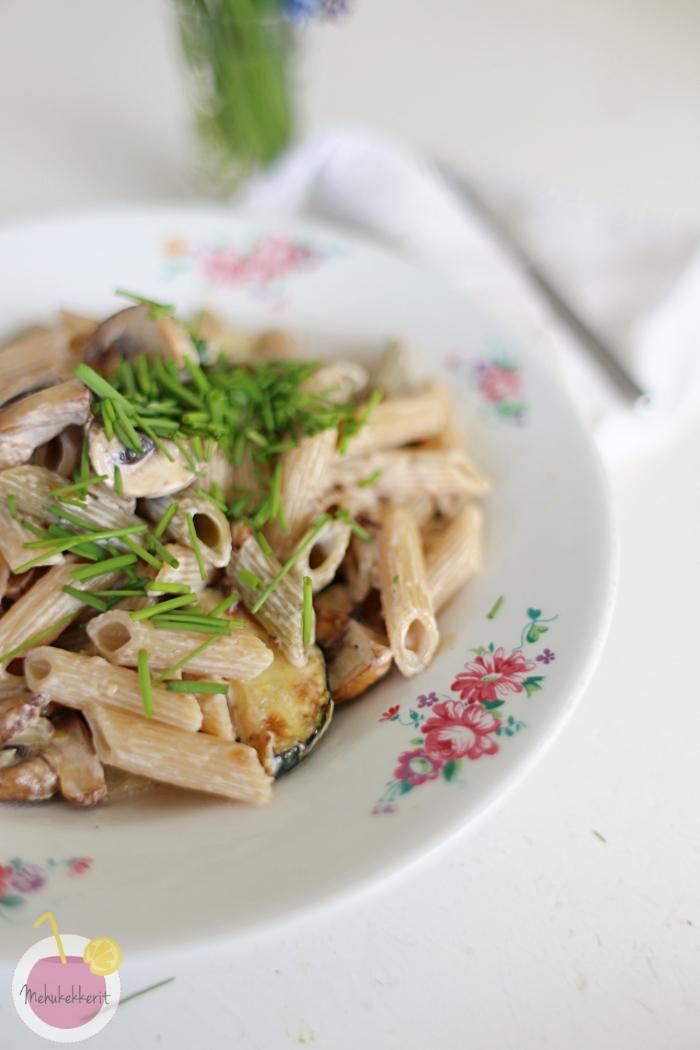 Tähän pastaan lisäsin vielä puolikkaan kesäkurpitsan, mutta pasta selviää hyvin ilman sitäkin. Toisaalta herkkusienien tilalle voi vaihtaa myös muita sieniä ja vaihtaa siten makua ja koostomusta. Tärkeintä on käyttää kuitenkin tuoreita sieniä, korkeintaan pakastettuja.