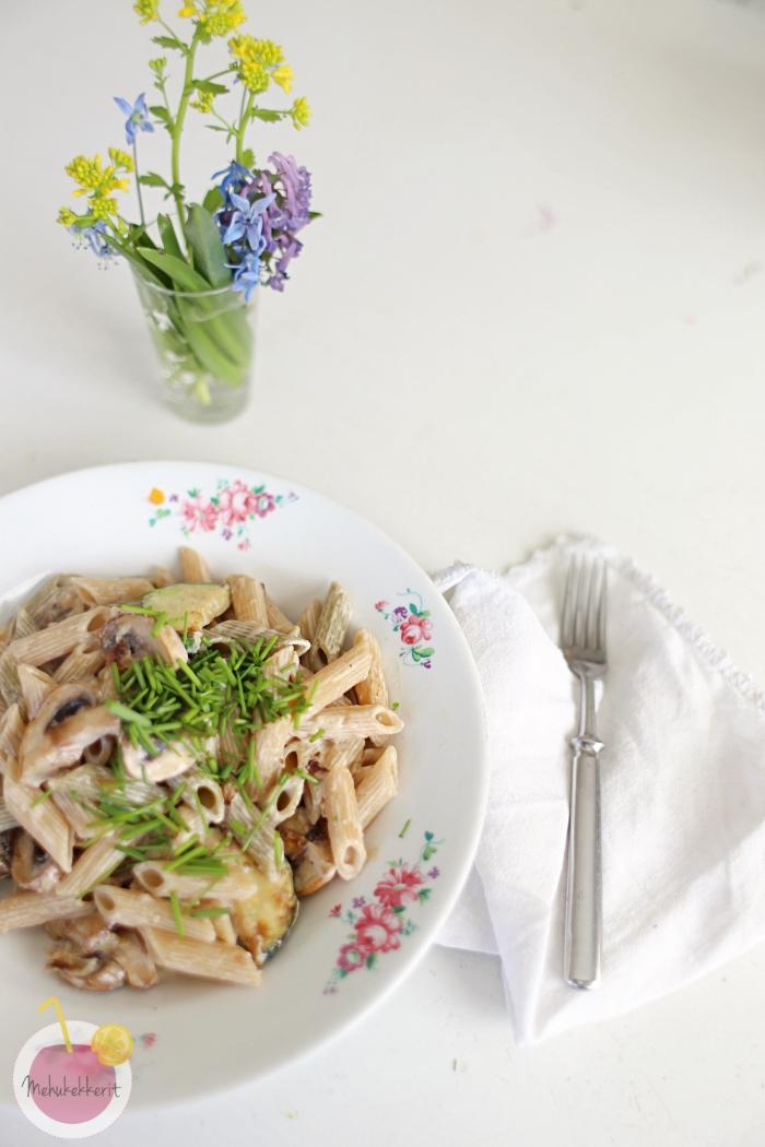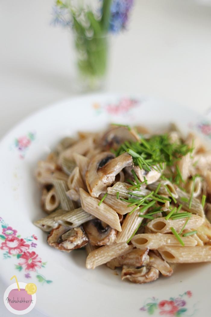 Ensimmäisten grillipäivien jälkeen jääkaappiin oli jäänyt yksittäisiä herkkusieniä. Kesken työpäivän tai sen jälkeen sitä kaipaa usein nopeaa ja herkullista helppoa arkiruokaa. Siispä kokkasin aivan todella herkullista herkkusieni pastaa kaapin antimista. Pasta on helppoa ja vegaanista, eli siis myös maidoton.