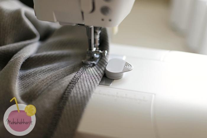 - Huolittelu apuna kaarteissa. Jos taas valitset huolittelun, huomioi se saumuroinnissa tai muussa huolittelussa. Eli tee vähän kireämpi huolittelu, jolloin kaarevat kohdat jäävät vähän ryppyyn. Tämä auttaa, kun käännät kaarevia kohtia nurjalle.