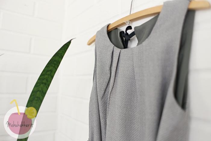 Tämä mekko meni asiakkaalle. Kankaat löytyivät kierrätyskeskuksesta, ja helmaa fiksattiin pariin kertaan. Aina ei siis välttämättä onnistu ensimmäisellä yrittämällä pituuden tai ompelun kanssa. Älä siis lannistu, vaan ompele uudelleen!