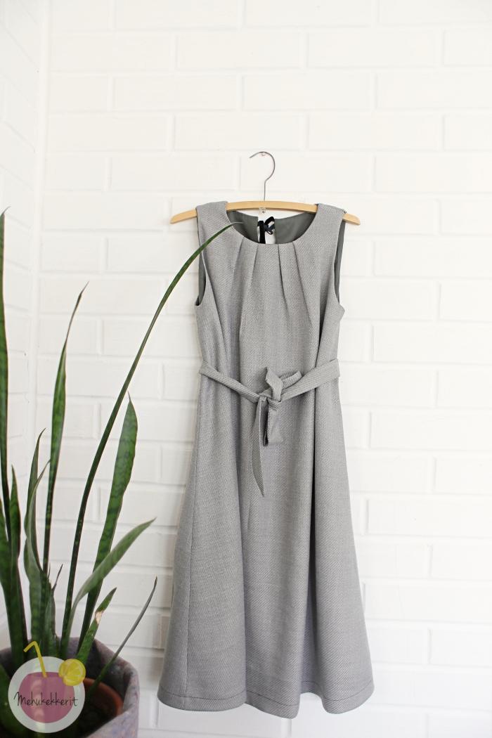 Tämä mekko meni asiakkaalle. Kankaat löytyivät kierrätyskeskuksesta, ja helmaa fiksattiin pariin kertaan. Aina ei siis välttämättä onnistu ensimmäisellä yrittämällä pituuden tai ompelun kanssa. Älä siis lannistu, vaan ompele uudelleen!
