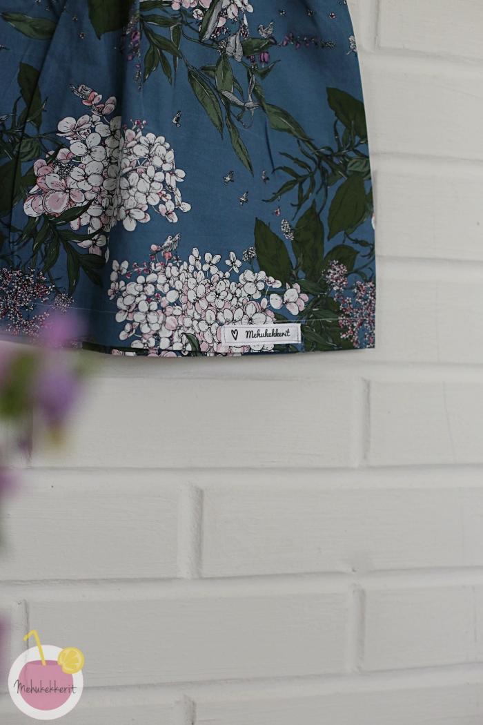Se aiempi Nuppuprintin kukista ommeltu mekko on ollut siis juhlakäytössä vuoden. Se on ollut niin minun kuin lapsenkin suosikki, ja jatkaa varmasti nyt PikkuSiskon suosikkina. Näitä ihania Nuppuprintin kankaita voi ostaa joko netin kautta tai Salapakasta.
