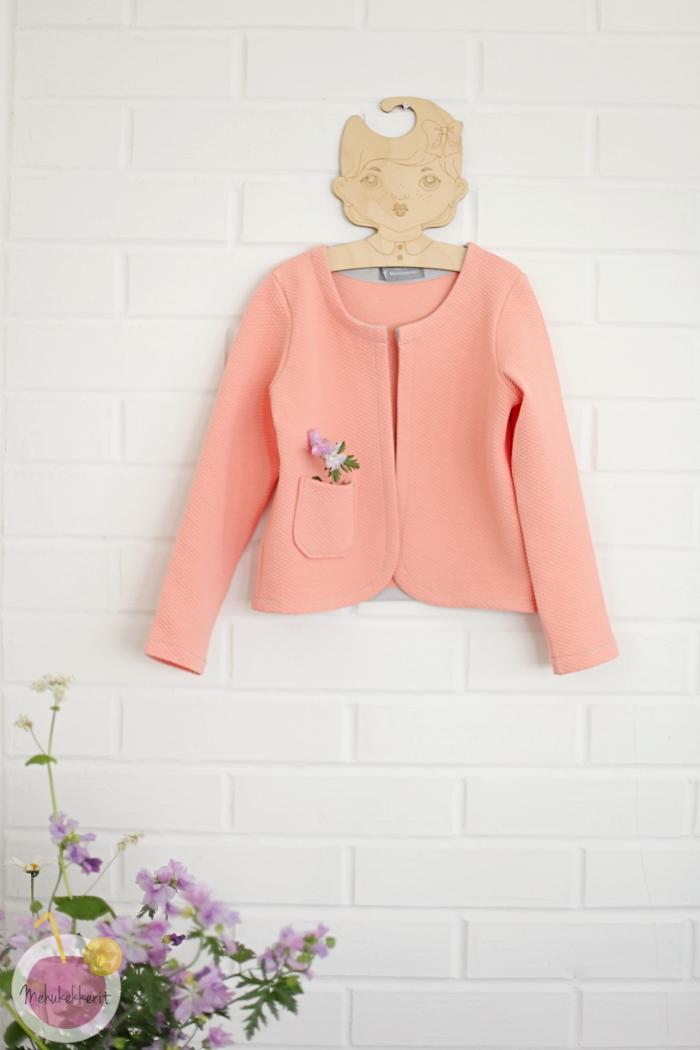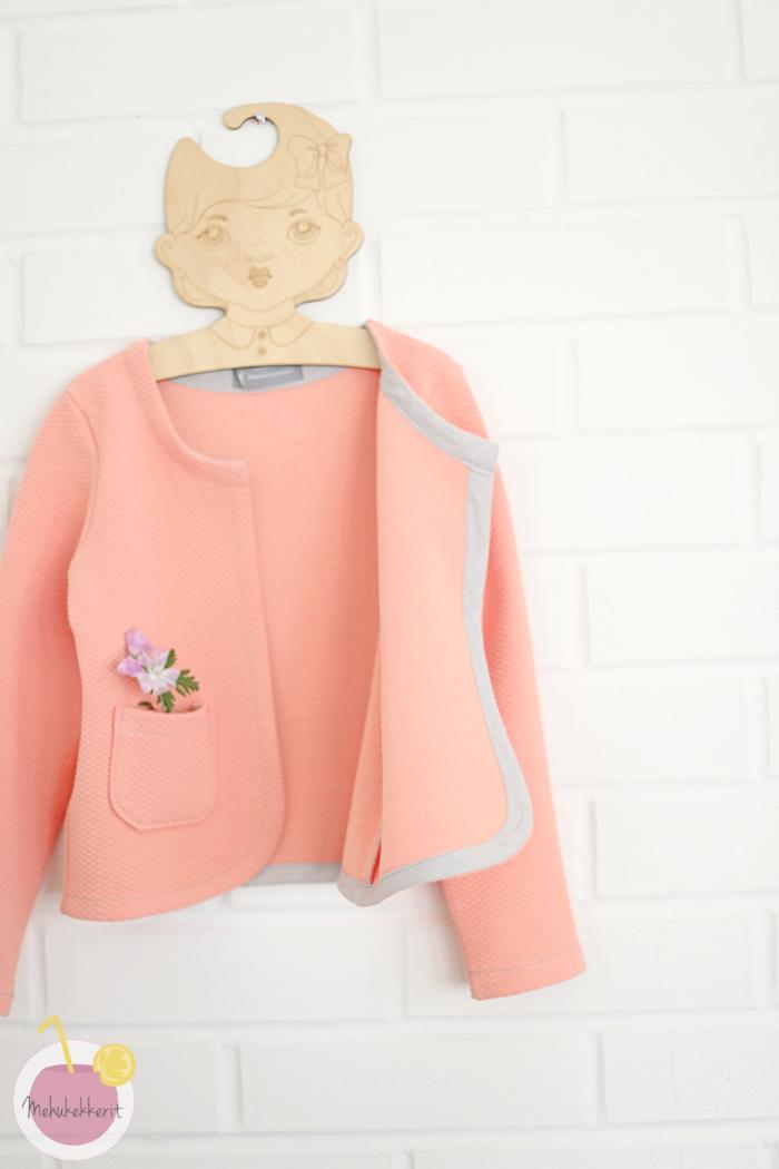 Mekon kaveriksi ompelin myös lapsen toivoman jakun. Se on muokattu paidan kaavasta. Leikkasin kankaan jo joku aika sitten, enkä ompeluhuumassa tokikaan enää löytänyt kankaan loppurippeitä.
