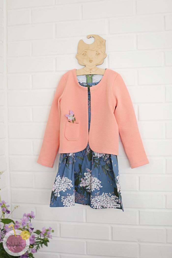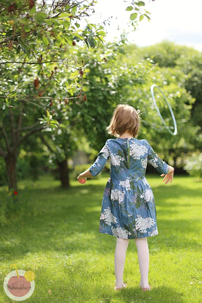 Itse olen ommellut jo monia lasten mekkoja Mekkotehtaan Maibrit kaavasta. Kaavan helma on omaan makuun auttamattoman liian lyhyt, mutta noin 10 cm pidempi helma ajaa jo asiansa.