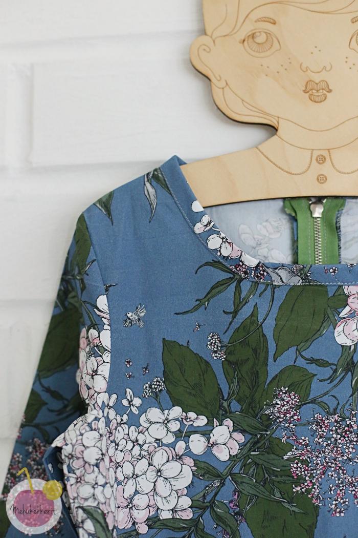 Olen innostunut ompelemaan mekkoja joustavamattomasta puuvillasta. Niissä on sitä omaa juhlamaista tunnelmaa, ja niitä minä osaan ommella. Tykkään jopa nykyään vetoketjuista, vinonauhoista ja tukikankaista. Vähän siitäkin, että kangas pitää ääntä ommellessa, sekä toki mekkojen ulkonäöstä.