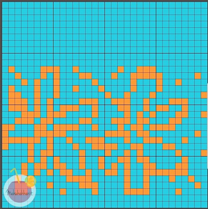 Itse käytin 8bit Painter ohjelmaa siis kukkakuvion piirtämiseen. Halusin sukan varteen kukkakuvion ja valitsin 32 x 32 kaavion koon. Minulla oli sukassa siis 64 silmukkaa, joten kuvio tuli varteen kahteen kertaan.