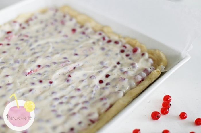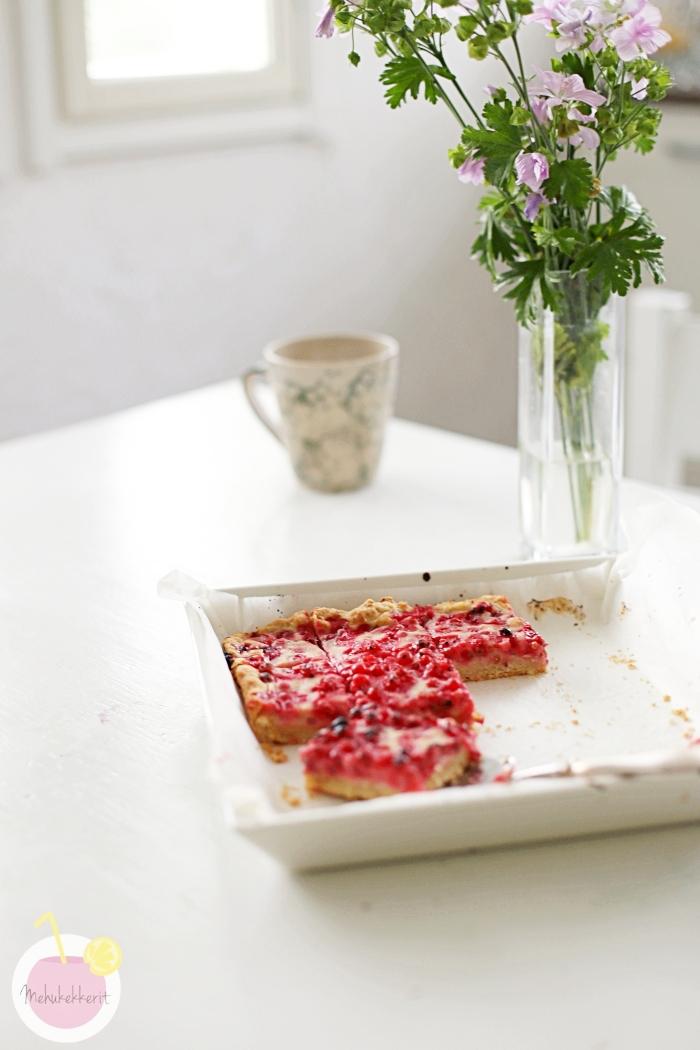 Viikonlopun vieraille tein kuitenkin uuden piirakan punaviinimarjoista ja vegaanisista aineista. Ajattelin ensin testata ihania viherherukoita, mutta ne olivatkin kadonneet pensaasta jo lähes kokonaan parempiin suihin.