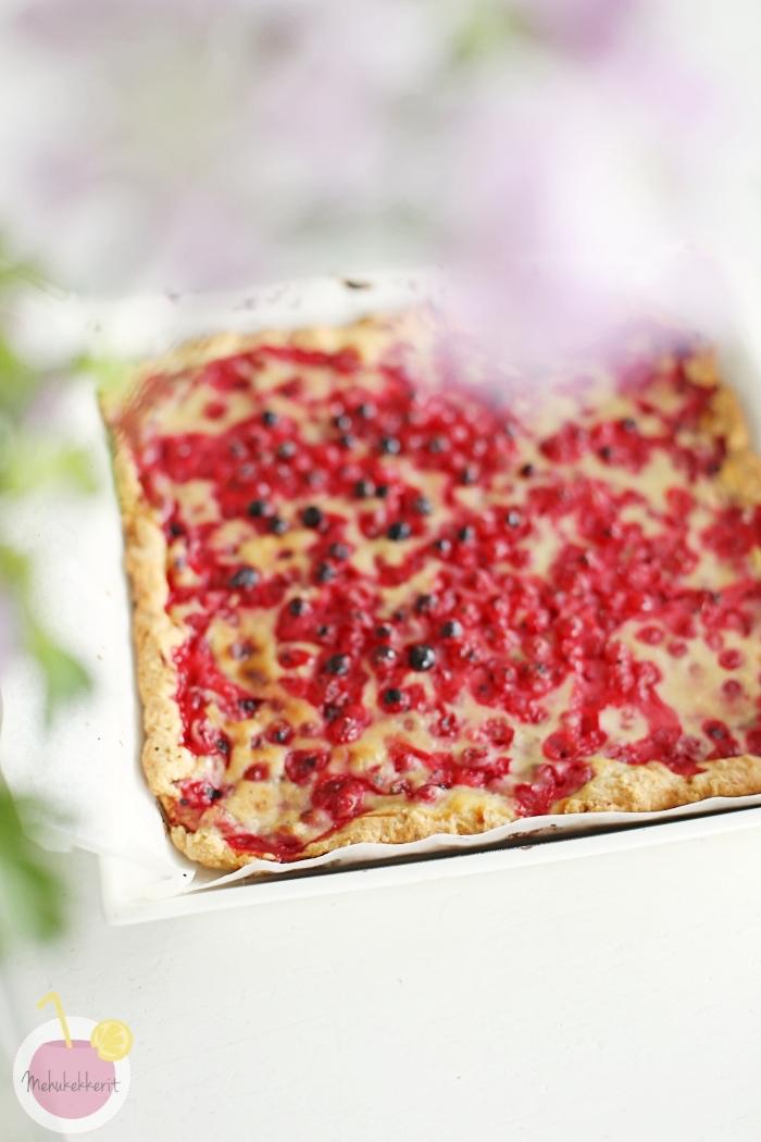 Kesän marjasatoa on poimittu pihalta suihin jo viikkoja. Niitä on napsittu aamupalaksi, jugurtin joukkoon ja leivontaan. Olen tehnyt marjapiirakoita raparperipiirakan ohjeellani, joka sopii hyvin siis myös marjoilla.