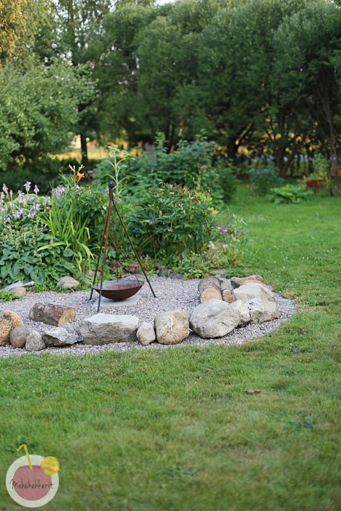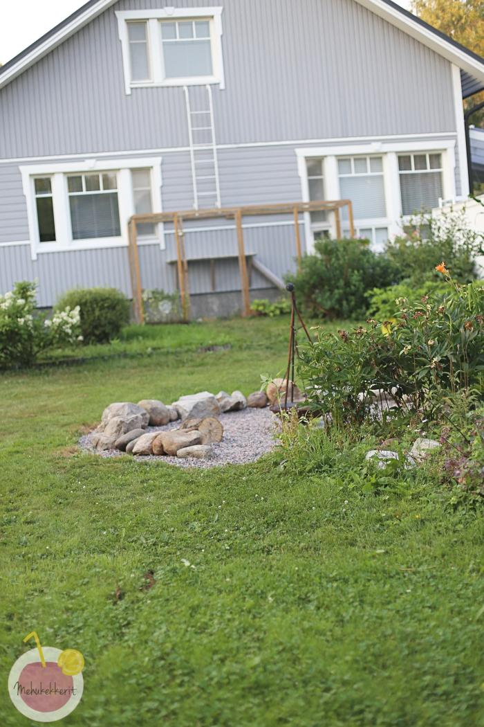 Talon edelliset asukkaat olivat jättäneet pihan kauniin tulipadan. Minulla tosin kesti vuosi tai kaksi ennen kuin tajusin sen käyttötarkoituksen. Kun sitten viime kesänä aloin haaveilla pienestä tulisijasta omassa pihassa, päätimme rakentaa sen nimenomaan tulipadan ympärille.