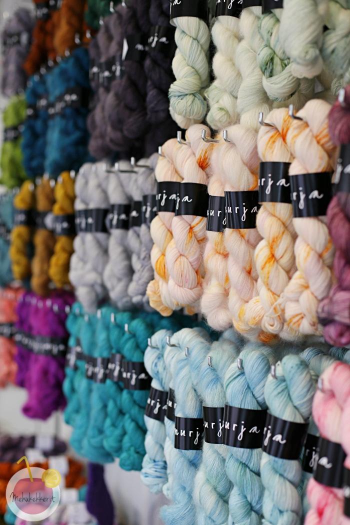Nurja onkin siis ajassa hyvin mukana. Se tarjoaa monipuolisen lankavalikoiman lisäksi itse takahuoneessa värjättyjä lankoja, paikan istua yhdessä ystävien kanssa ja myöhemmin myös erilaisia työpajoja ja kursseja. Tulossa on toki myös verkkokauppa, jotta me muuallakin lankoihin ihastuneet saisimme nauttia nurjan langoista.