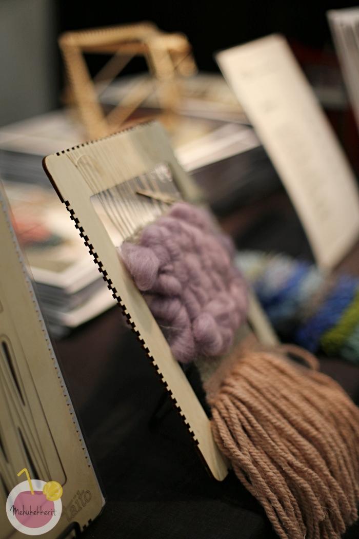 Kudonta on ollut tämän Taitoliiton tämän vuoden käsityötekniikka. Jo aiemmin olen törmännyt pieniin kudontakehyksiin, ja nyt niitä löytyi lisää vielä pienempinä, sekä jopa pyöreinä. Kudontakehyksiä myi siis esim Kässäkerho Pom pom ja Taitoshop Varsinais-Suomi.