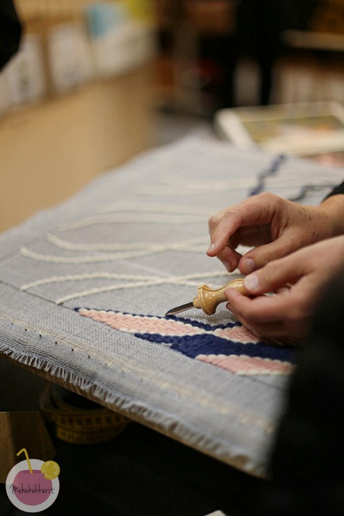 Tuftaus on vanha tekniikka, joka nyt nousee uudelleen. Itse olen ihastellut sitä tänä vuonna enemmänkin, ja nyt pääsin messuilla kunnolla myös kokeilemaan. Laitteita näkyi vähän myynnissä, mutta ainakin Taitoshopin kujalla myydään tukevaa tuftausneulaa/kynää!
