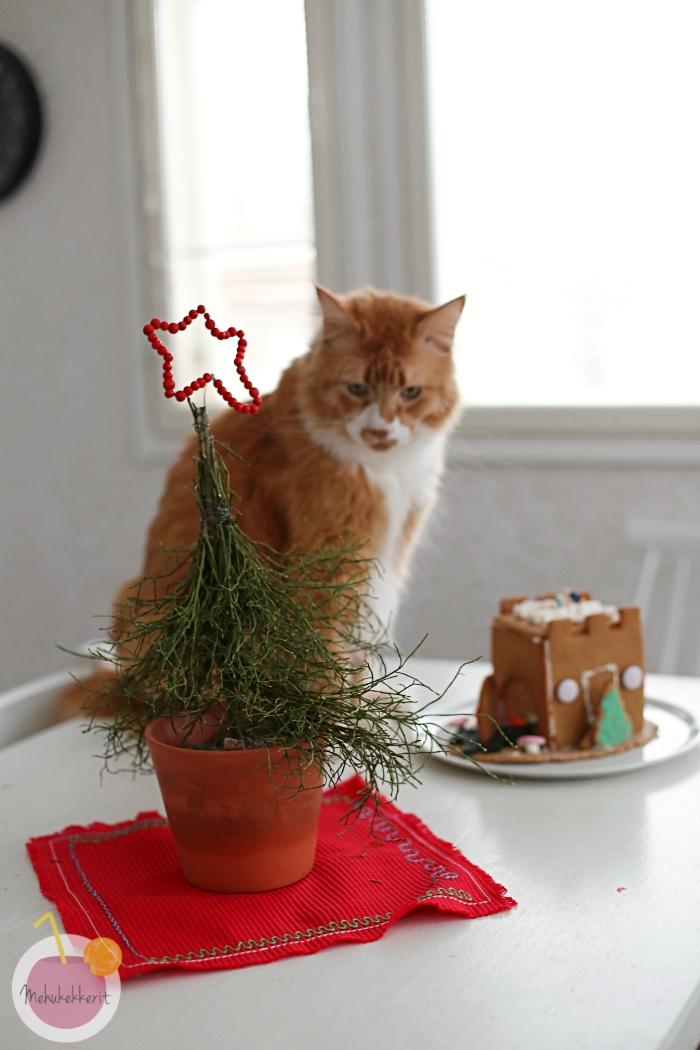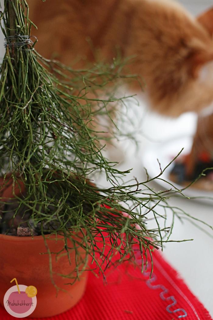 Eihän tuo parikymmentä vuotta vanha kuusi ole yhtä kaunis kuin nykyaikaiset ledivaloineen, mutta niin kauan aion tuon jouluisin pystyttää kun vielä kasaan saan. Toisinaan kyllä kaipaan aidon kuusen tuoksua jouluisin, isäntä tuohon vain totesi, että sitähän saa kaupasta ostettua pullossa 😀 Enpä ole vielä tuollaiseen puteliin törmännyt..