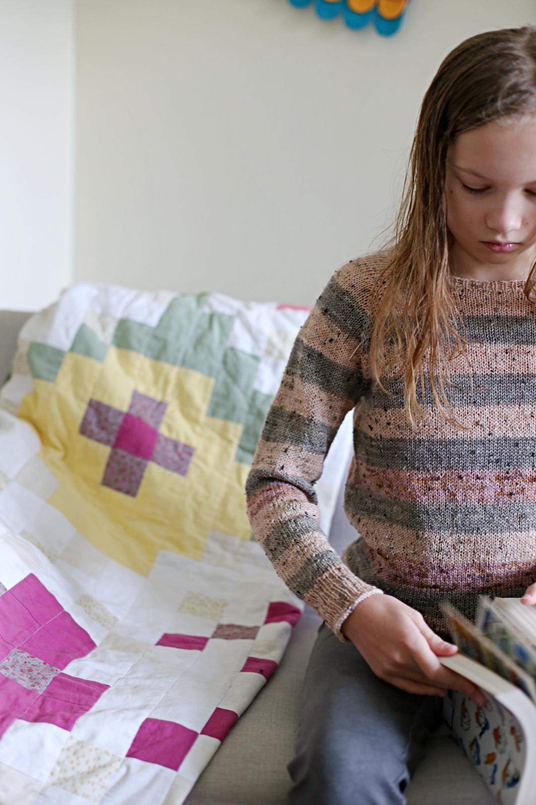 Lapsen peruspaita on suunniteltu arkipaidaksi. Sen neulomiseen voi käyttää jämälankoja, puretun vanhan villapaidan tai vaikka yhdistää niitä molempia.
