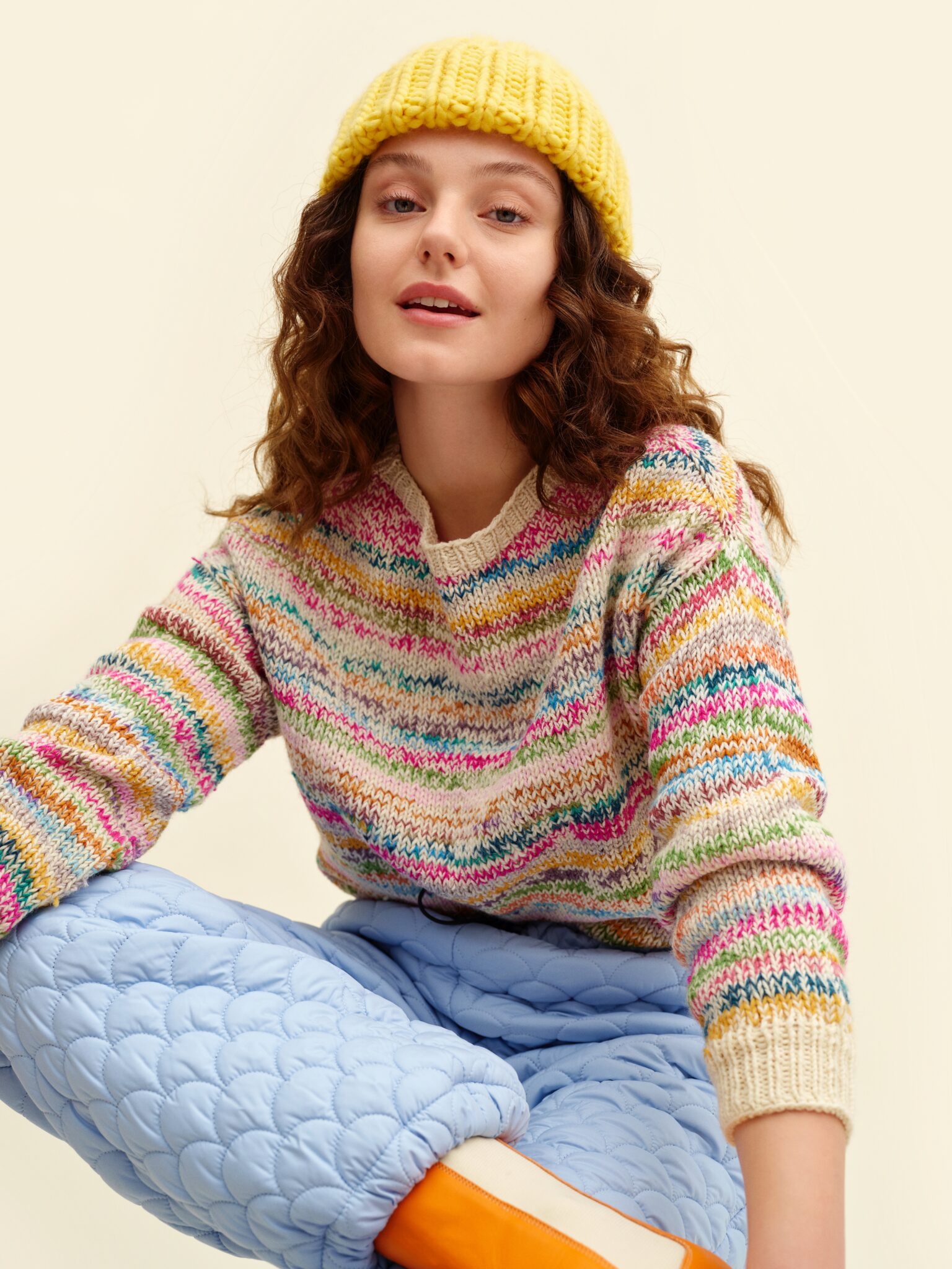 Viimein-paita syntyy kaapin perukoille jääneistä pienistä keristä, jämälangoista ja monen värin yhdistelmästä. Paita antaa mahdollisuuden saada pienetkin lankaerät käyttöön, viimeinkin! Neule neulotaan kahdella langalla yhtä aikaa, ja myös päätteleminen hoidetaan työn edetessä.